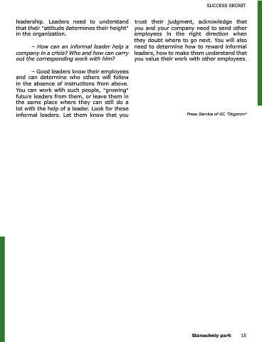 informal leaders. Let them know that you Press Service of GC "Orgprom"