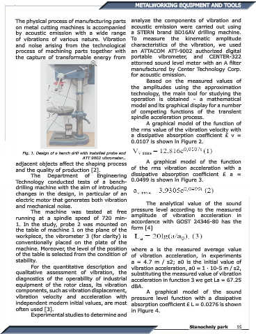 and the quality of production [2]. of the rms vibration acceleration with a