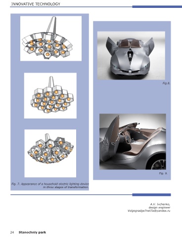 INNOVATIVE TECHNOLOGY Fig.8. Fig. 9. Fig. 7. Appearance of a household electric lighting device in three stages of transformation. A.V. Ivchenko, design engineer Volgogradge7net7a@yandex.ru 24 Stanochniy park
