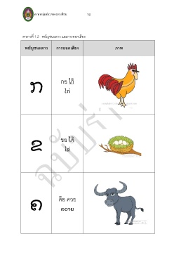 ภาษากลุ่มประชาคมอาเซียน 16 ตารางที่ 1.2 พยัญชนะลาว และการออกเสียง พยัญชนะลาว การออกเสียง ภาพ ກ กอ ไก๊ ໄກ ່ ຂ ขอ ไค ้ ໄຂ ່ ค ๊อ ควย ຄ ຄວາຍ