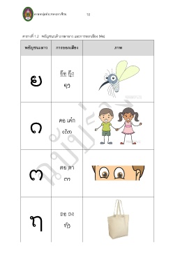 ภาษากลุ่มประชาคมอาเซียน 18 ตารางที่ 1.2 พยัญชนะเค้าภาษาลาว และการออกเสียง (ต่อ) พยัญชนะลาว การออกเสียง ภาพ ย ๊อ ยุ๊ง ຍ ຍ ຸ ງ ດ ดอ เด๋ก ເດກ ັ ตอ ตา ຕ ຕາ ถอ ถง ຖ ຖງ ົ