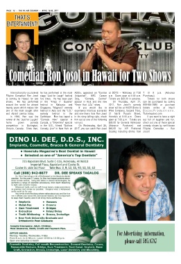 around the world for almost festival in Malaysia and “Kevin Hart LOL” show. 2017, Ron Josol’s comedy 808-864-2980 or purchase