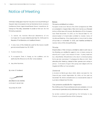 NOTICE is hereby given that the Forty-Second Annual Meeting of Notes