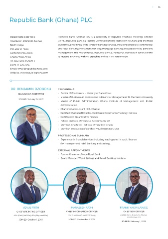 REGISTERED OFFICE Republic Bank (Ghana) PLC is a subsidiary of Republic Financial Holdings Limited