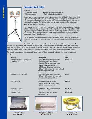 Emergency Worklight Kit (1) set of 500 watt halogen lights 41000
