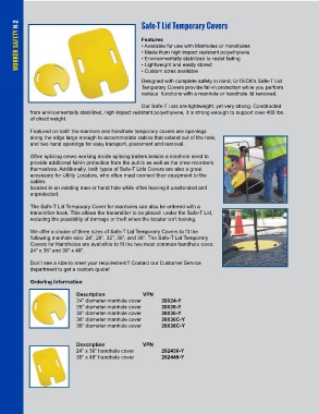 following manhole size: 24”, 28”, 32”, 36”, and 38”. The Safe-T Lid Temporary