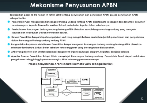 Berdasarkan pasal 15 UU nomor 17 tahun 2003 tentang penyusunan dan penetapan APBN, proses penyusunan APBN
