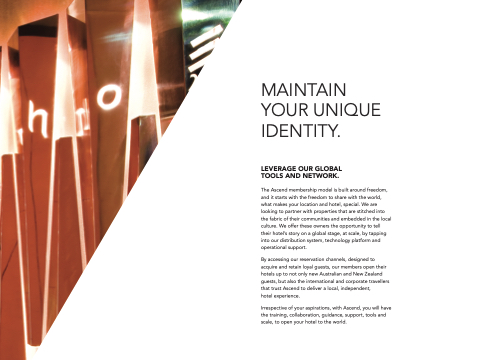 By accessing our reservation channels, designed to acquire and retain loyal guests, our members open their hotels up to not only new Australian and New Zealand guests, but also the international and corporate travellers that trust Ascend to deliver a local, independent,