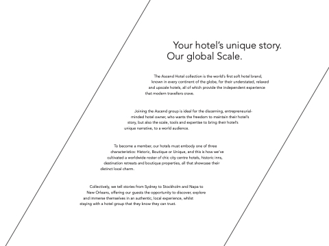 Joining the Ascend group is ideal for the discerning, entrepreneurial- minded hotel owner, who wants the freedom to maintain their hotel’s