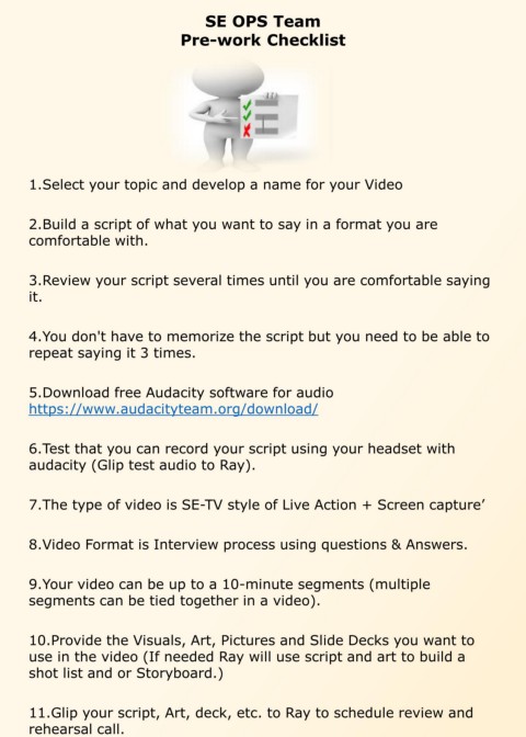 11.Glip your script, Art, deck, etc. to Ray to schedule review and