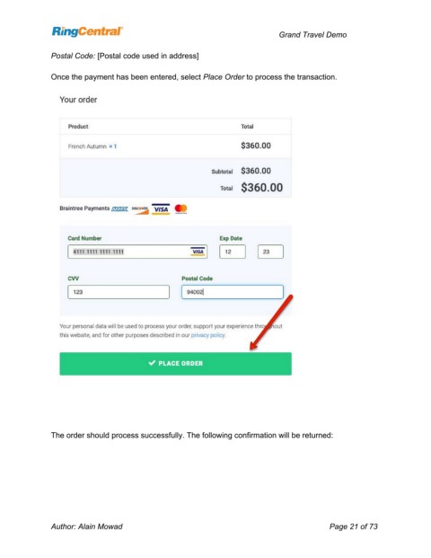 Once the payment has been entered, select Place Order to process the transaction.