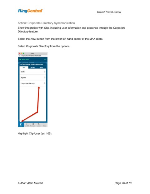 Show integration with Glip, including user information and presence through the Corporate