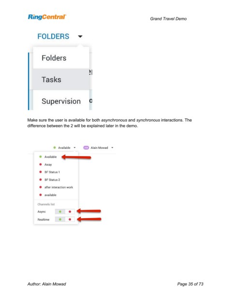Grand Travel Demo Make sure the user is available for both asynchronous and synchronous interactions. The difference between the 2 will be explained later in the demo. Author: Alain Mowad Page 35 of 73