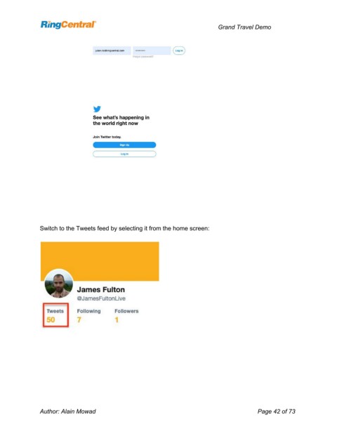 Grand Travel Demo Switch to the Tweets feed by selecting it from the home screen: Author: Alain Mowad Page 42 of 73