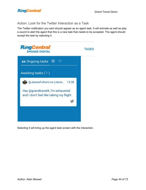 The Twitter notification you sent should appear as an agent task. It will animate as well as play