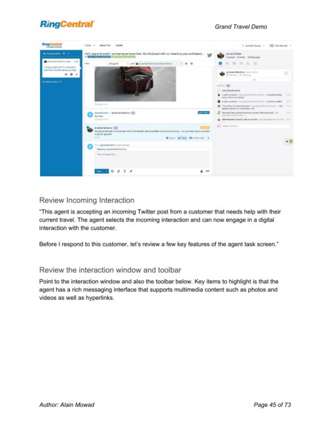 current travel. The agent selects the incoming interaction and can now engage in a digital