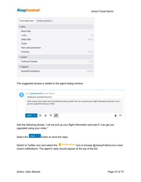 The suggested phrase is added to the agent dialog window: