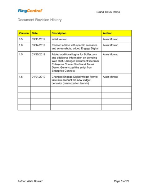 1.0        03/14/2019      Revised edition with specific scenarios    Alain Mowad