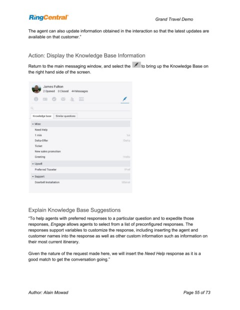 Return to the main messaging window, and select the to bring up the Knowledge Base on