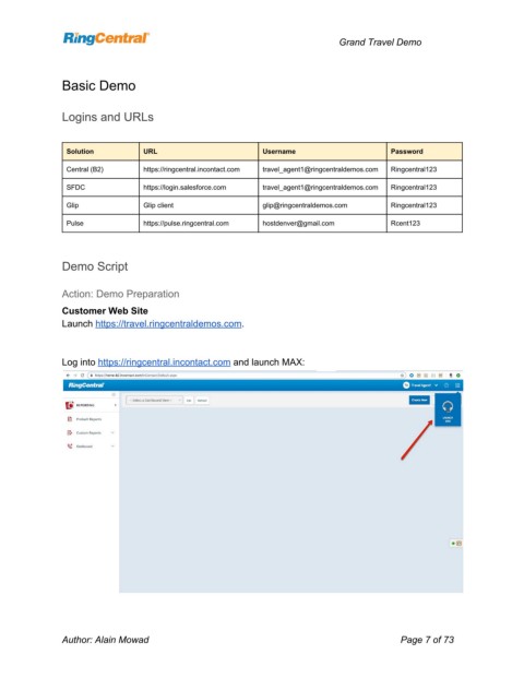 Central (B2)      https://ringcentral.incontact.com   travel_agent1@ringcentraldemos.com   Ringcentral123
