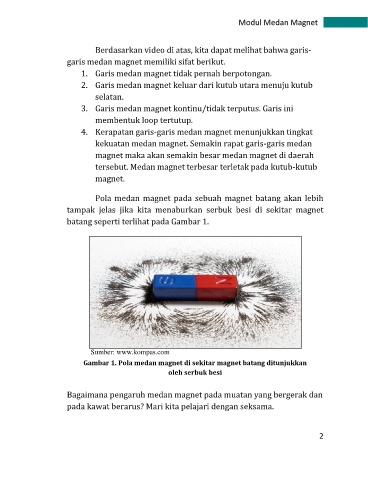 2. Garis medan magnet keluar dari kutub utara menuju kutub