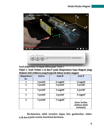 Tabel 1. Arah Vektor , , pada Eksperimen Gaya Magnet yang