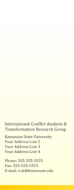 International Conflict Analysis & Transformation Research Group Kennesaw State University Your Address Line 2 Your Address Line 3 Your Address Line 4 Phone: 555-555-5555 Fax: 555-555-5555 E-mail: icat@kennesaw.edu