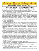 Professional Fees: Avera St. Luke’s $4,197.00; Carlsen Funeral Home $150.00; Cook County Clerk of Court $18.00; Dohrer Law Of ce $686.20; Marv Ekeren $6.00; Mark Katterhagen $46.50; Kennedy, Pier, Knoff & Loftus $182.60; Kuck Law Of ce $436.00; Lewis & Clark BHS $1,280.00; Lucy Lewno $297.00; Mikelson Law Of ce $121.50; Pennington Co. State’s Attorney $215.00; Rogers Law Of ce $584.90; Sanford Clinic $229.77; Sanford Health $686.55; Christy Grif n-Serr Law Of ce $564.00; Stoddard Law Of ce $1,118.60; Tammy Stolle Court Reporting $65.70; Karen Swanda $40.50; Yankton Co. Sheriff Of ce $100.00; Sara Zahn $27.20.