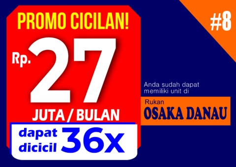 PROMO CICILAN! #8 27 Rp. Anda sudah dapat memiliki unit di Rukan / JUTA BULAN OSAKA DANAU dapat 36x dicicil