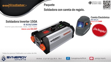Paquete Soldadora con careta de regalo. Careta Electrónica Soldadora Inverter 150A MS 601/2 PRECIO LISTA $599 IE 8150/120M Inverter para electrodo, 150A, 120V / 60Hz PRECIO LISTA $3,537 Todos los precios Publicados son antes de IVA.