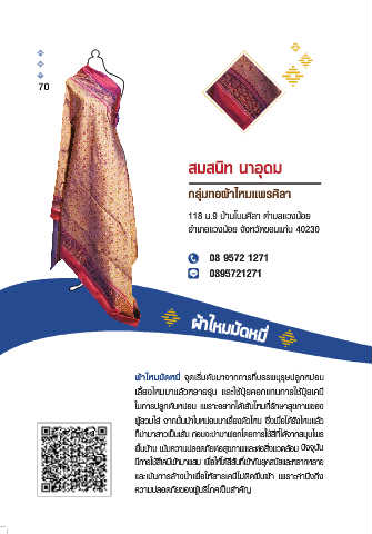 ผู้สวมใส่ จากนั้นน�าใบหม่อนมาเลี้ยงตัวไหม ซึ่งเมื่อได้รังไหมแล้ว