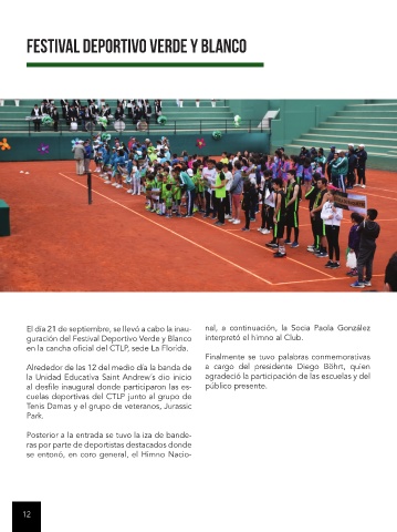 guración del Festival Deportivo Verde y Blanco interpretó el himno al Club.