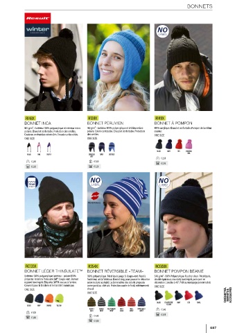 BONNET LÉGER THINSULATE™ BONNET RÉVERSIBLE «TEAM» BONNET POMPON BEANIE
