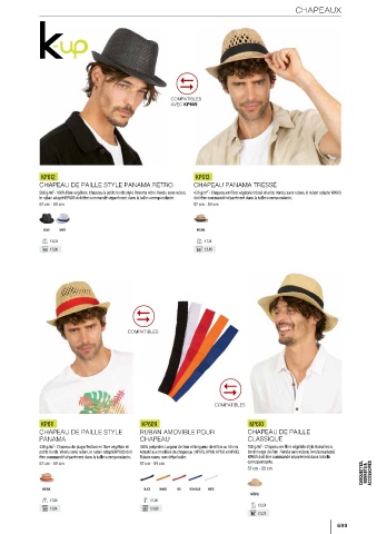 560 g/m² • 100% fibre végétale. Chapeau à petits bords style Panama rétro. Vendu sans ruban, 430 g/m² • Chapeau en fibre végétale tréssé et aéré. Vendu sans ruban, le ruban adapté KP609