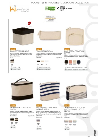 220 g/m² • 100% coton. Trousse de toilette ou trousse à 310 g/m² • 70% jute / 30% coton. Pochette accessoires ou MARIN