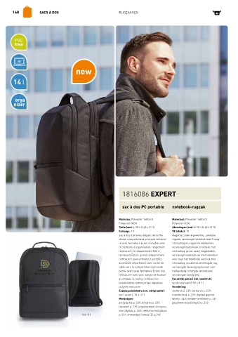 sac à dos d’affaires élégant de forme elegante, strak afgewerkte, zakelijke