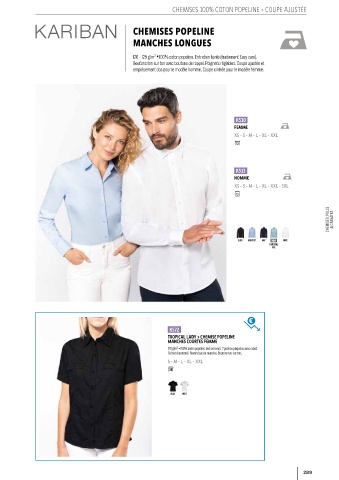 120 - 125 g/m² • 100% coton popeline. Entretien facile (traitement Easy care).