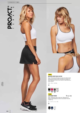 180 g/m² • 94% polyamide / 6% élasthanne. Dos nageur. Tissu doublé et tricotage