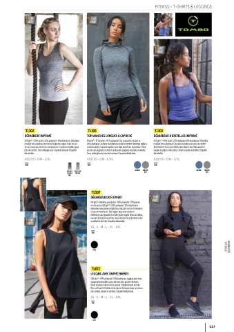 265 g/m² • 60% nylon / 32% polyester / 8% élasthanne. Débardeur 198 g/m² • 57 % nylon / 43 % polyester. Top à capuche moulant et 265 g/m² • 60% nylon / 32% polyester/ 8% élasthanne. Débardeur