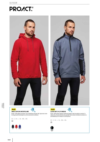 180 g/m² • 100% polyester micropolaire. Coupe confortable avec découpes côtés. Capuche avec cordon 90 g/m² • 100% polyester déperlant. Empiècements épaules et avant-bras doubles et contrastés. Col