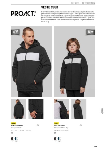 110 g/m² • Extérieur: 100% polyester avec traitement déperlant et toucher peau de pêche. Doublure 100%