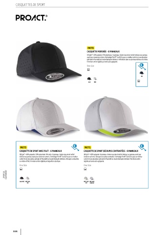 300 g/m² • 66% polyester / 30% polyamide / 4% coton. 6 panneaux. Visière incurvée et renfort 300 g/m² • 100% polyester. 6 panneaux. Visière incurvée et renfort intérieur sur panneau avant pour