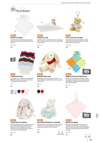 160 g/m² • 100% coton jersey. Habille les références MM01, MM02, Bandana triangle en 100% coton twill. Surface de marquage : 6x3 cm. 100% polyester. Doudou éléphant avec hochet intégré. Couverture