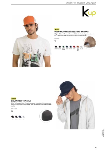 300 g/m² • 60% coton / 40% polyester. 6 panneaux. Modèle Trucker rétro de haute qualité avec visière mi-