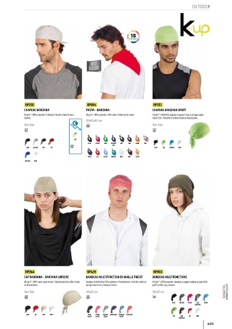 180 g/m² • 100% coton sergé brossé. S’attache derrière la tête à l’aide Bandeau multifonction 95% polyester / 5% élasthanne. Peut être utilisé en 140 g/m² • 100% polyester. Bandeau à usages multiples pouvant être