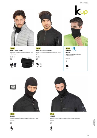 82 g/m² • 100% maille acrylique. Tour de cou réversible avec lacet de 220 g/m² • 92% polyester / 8 % élasthanne. Bandeau respirant, idéal pour DE SPORT