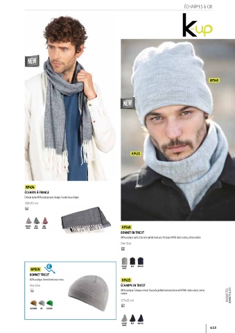 100 100% acrylique. Écharpe en tricot. S’accorde parfaitement avec le bonnet KP549, même coloris, même
