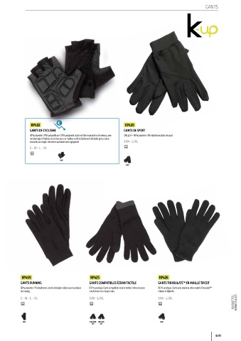 40% polyester / 35% polyuréthane / 25% polyamide. Gants en fibre respirante sur le dessus, avec 280 g/m² • 96% polyester / 4% élasthanne.Gants de sport.