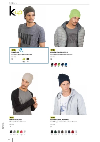 100% acrylique. Bonnet en maille tricot côtelée. Bonnet 100% acrylique avec bandeau intérieur doublé polaire 100% polyester.