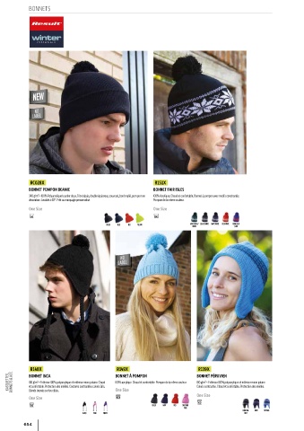 340 g/m² • 100% Polyacrylique toucher doux. Tricot épais, double épaisseur, couvrant, bord replié, pom pom en 100% Acrylique. Chaud et confortable. Bonnet à pompon avec motifs constrastés.